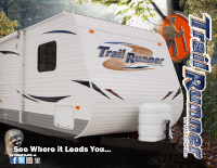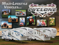 Can be a travel trailer or fifth wheel. Designed with a rear garage and opening for your “toys.”