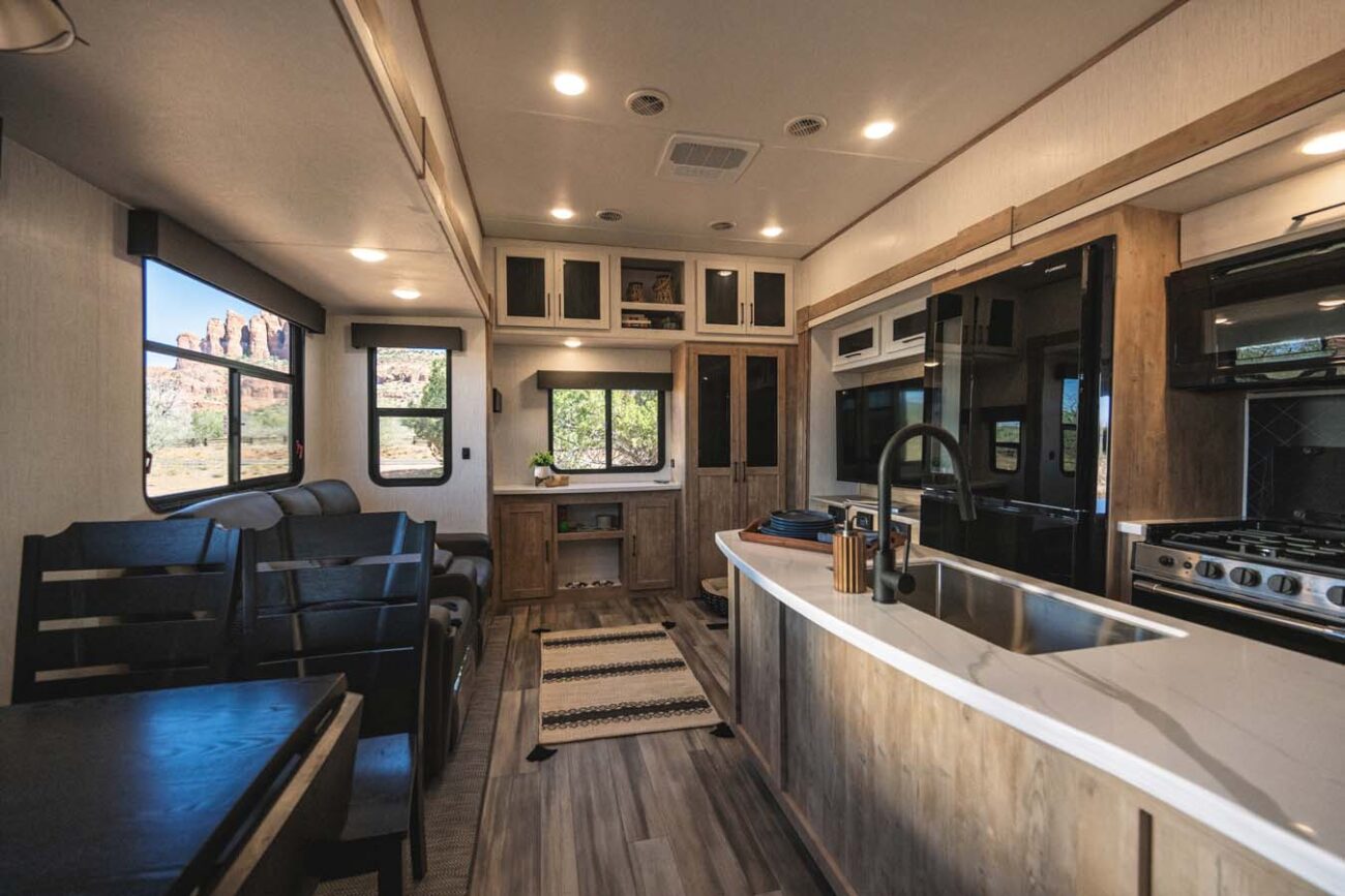 “We chose the Bighorn 3120RK because of the full-size refrigerator and the open-concept, rear-kitchen was a must for us. The way Heartland designed this fifth wheel made us fall in love.”