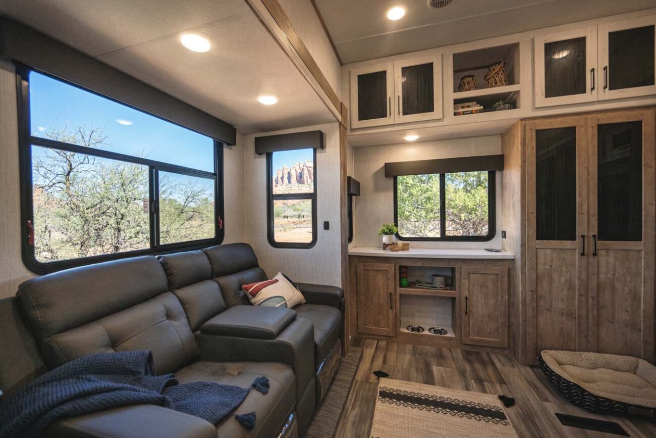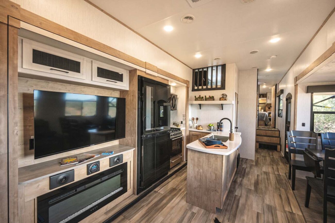 Experience the Milestone fifth wheel RV, where innovative amenities meet exceptional value. Enjoy standard features like a smart TV with JBL sound system and upgraded MORryde solid steps on every Heartland Milestone RV, all without breaking the bank.