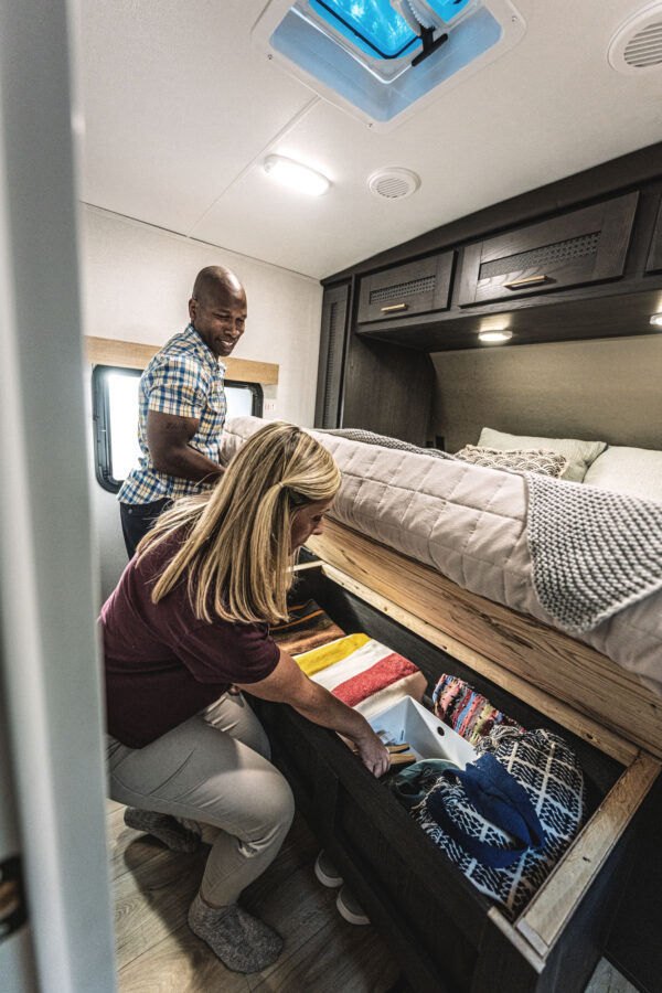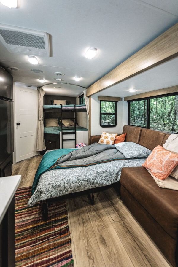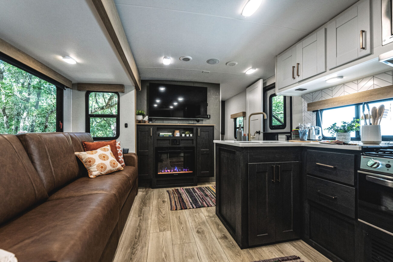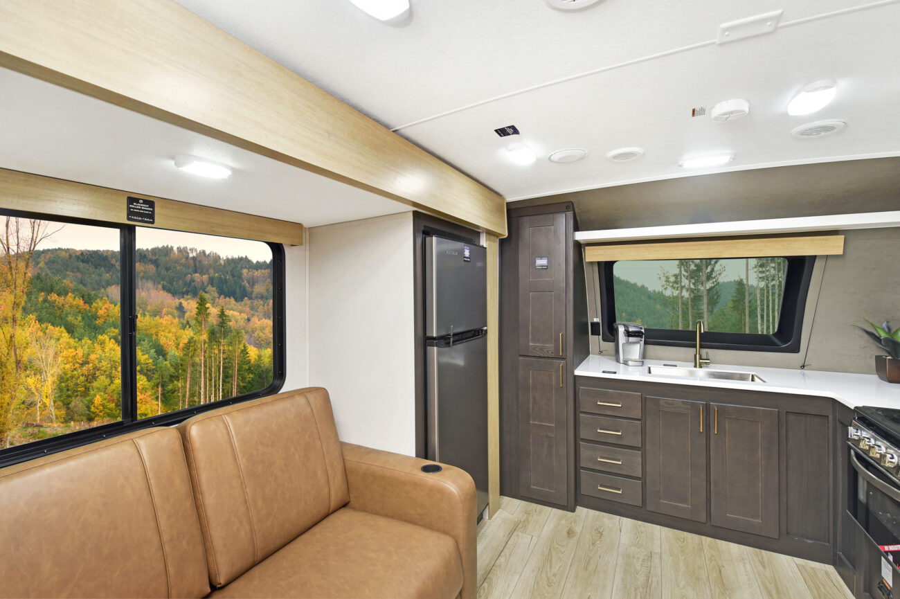Hit the trail in a spacious RV designed to accommodate the whole family—including the dog. With an open concept and oversize windows, you will be able to enjoy your stay away from home.