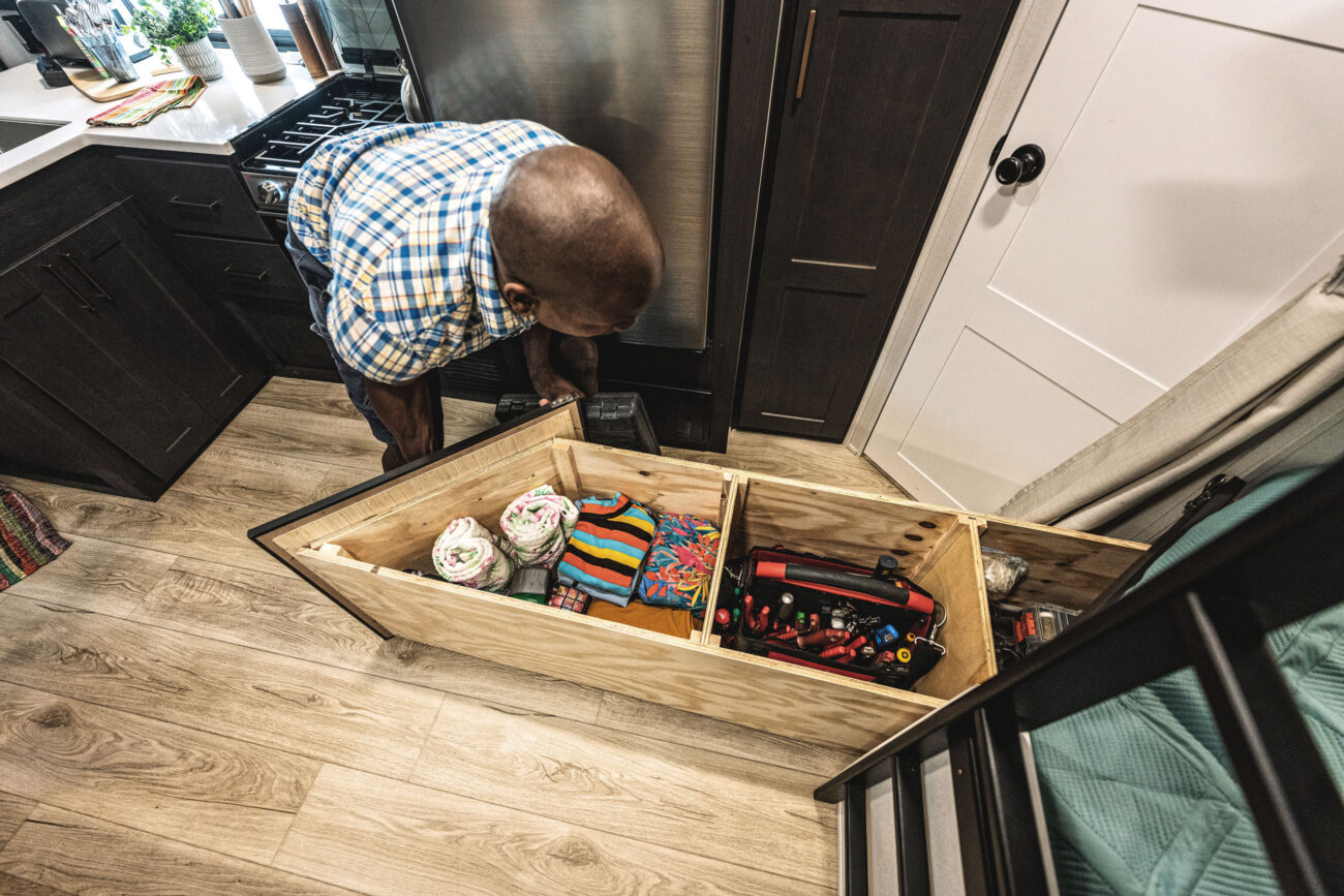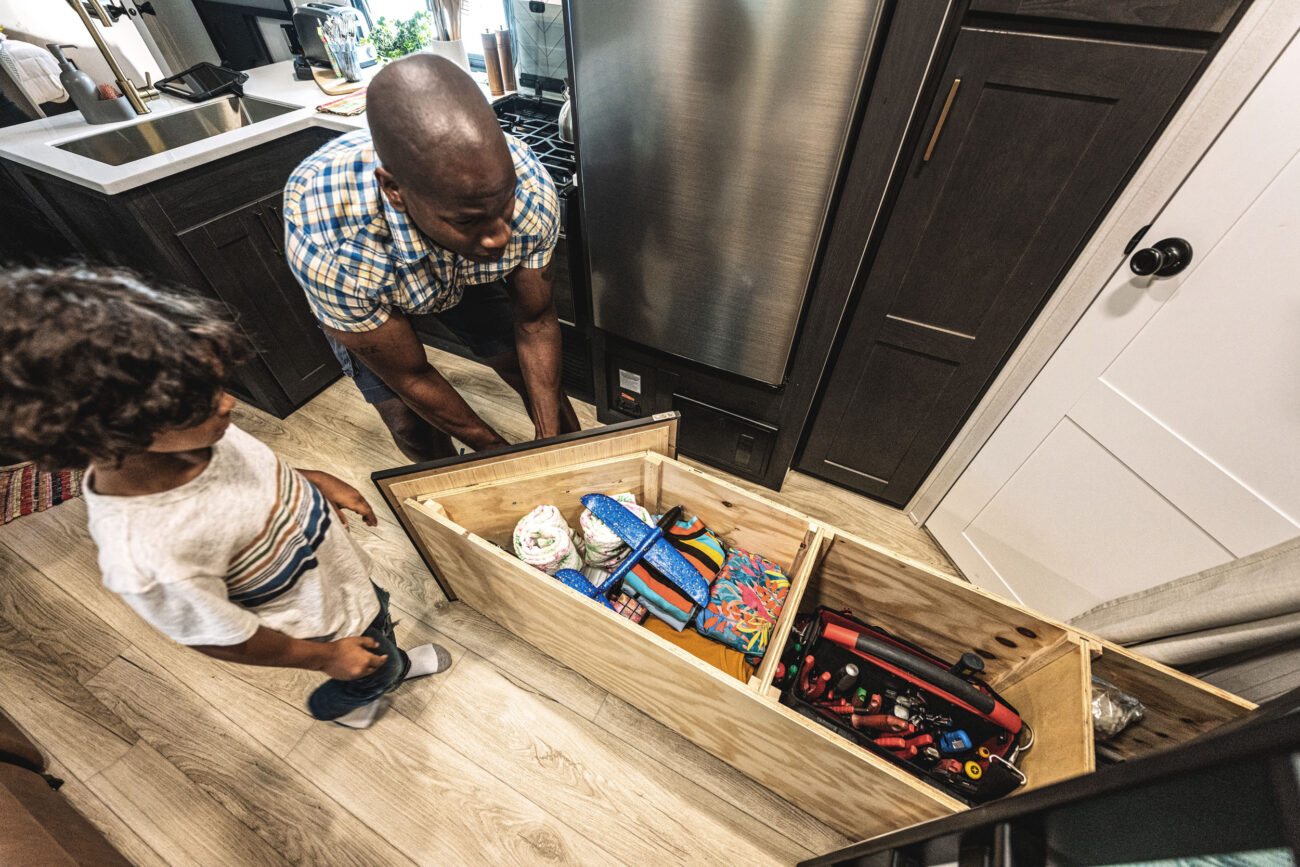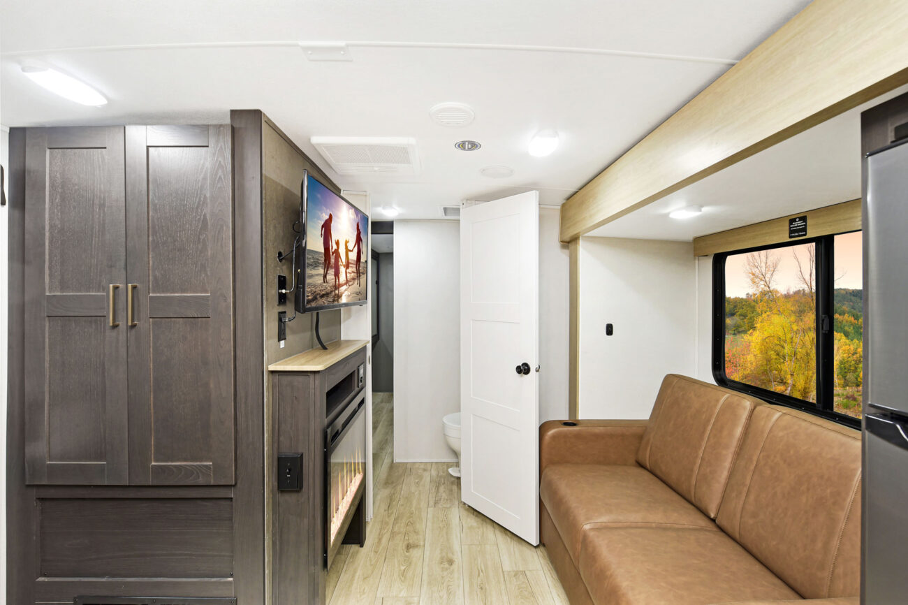 Hit the trail in a spacious RV designed to accommodate the whole family—including the dog. With an open concept and oversize windows, you will be able to enjoy your stay away from home.