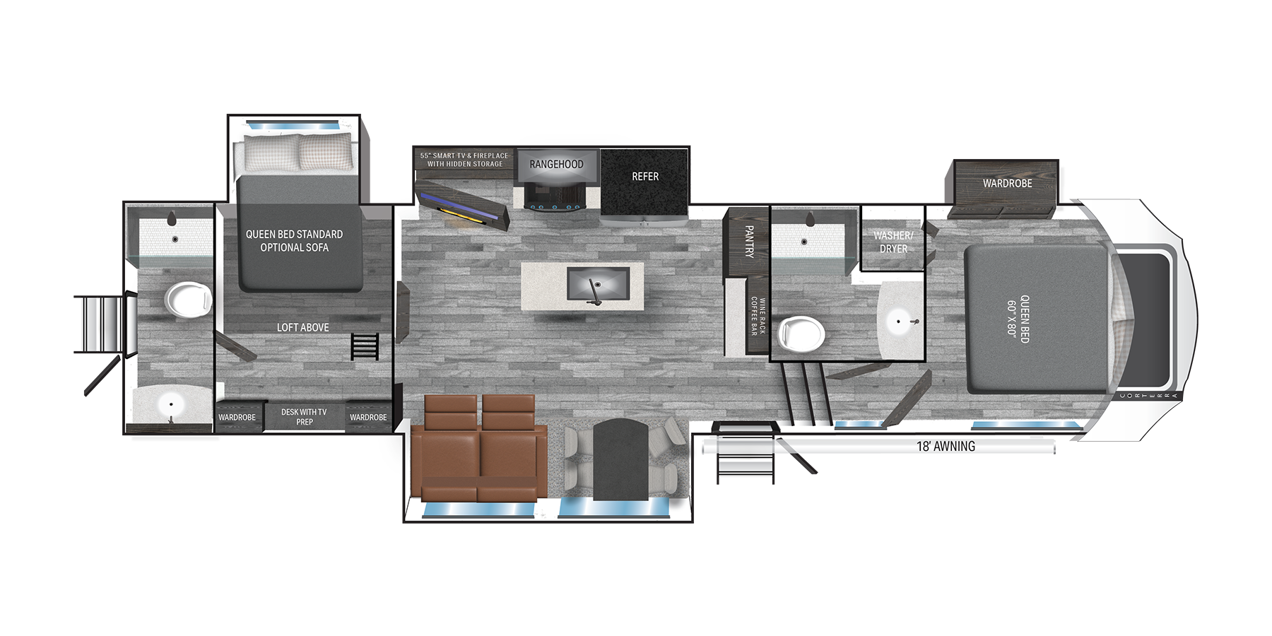- Fiberglass Front Cap with Oversized Panoramic Windshield
