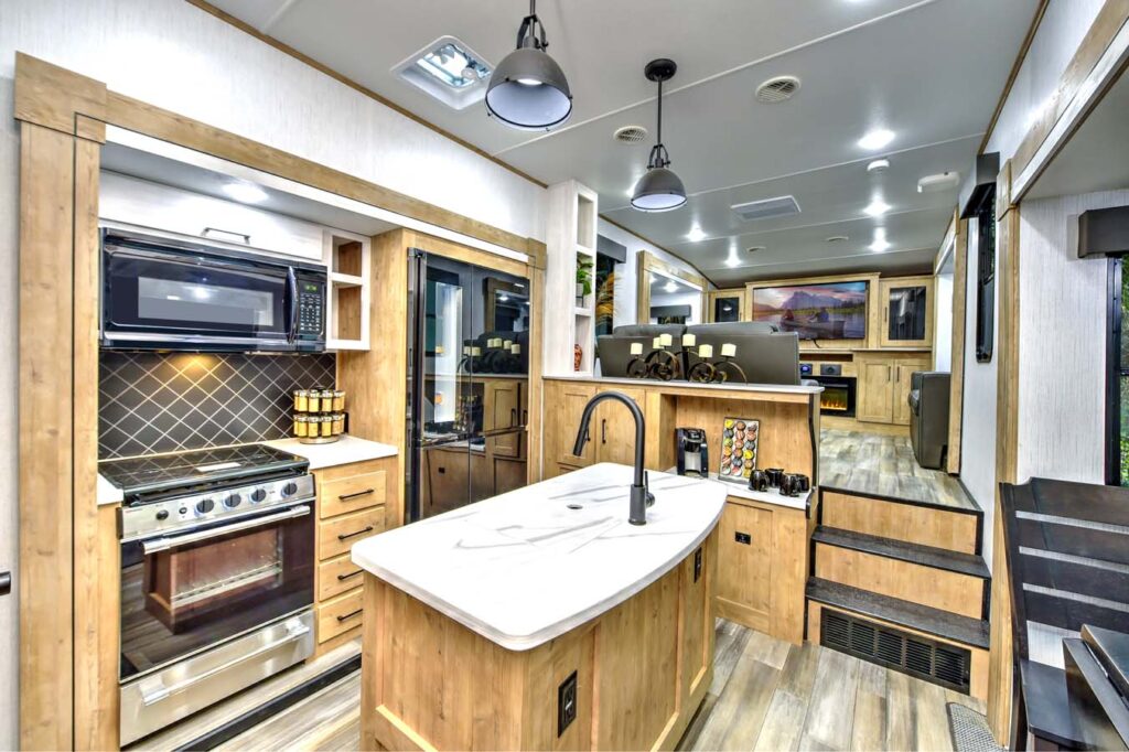 - Chef kitchen (30˝over the range microwave/21˝ large RV oven)