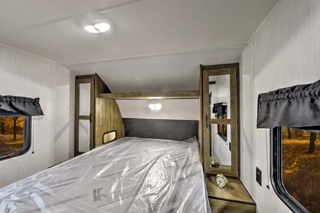 - Pioneer Master Suite including a full size residential queen bed (60”x80”), full length dual wardrobes with integrated lighting and USB charging, CPAP ready storage with full power access