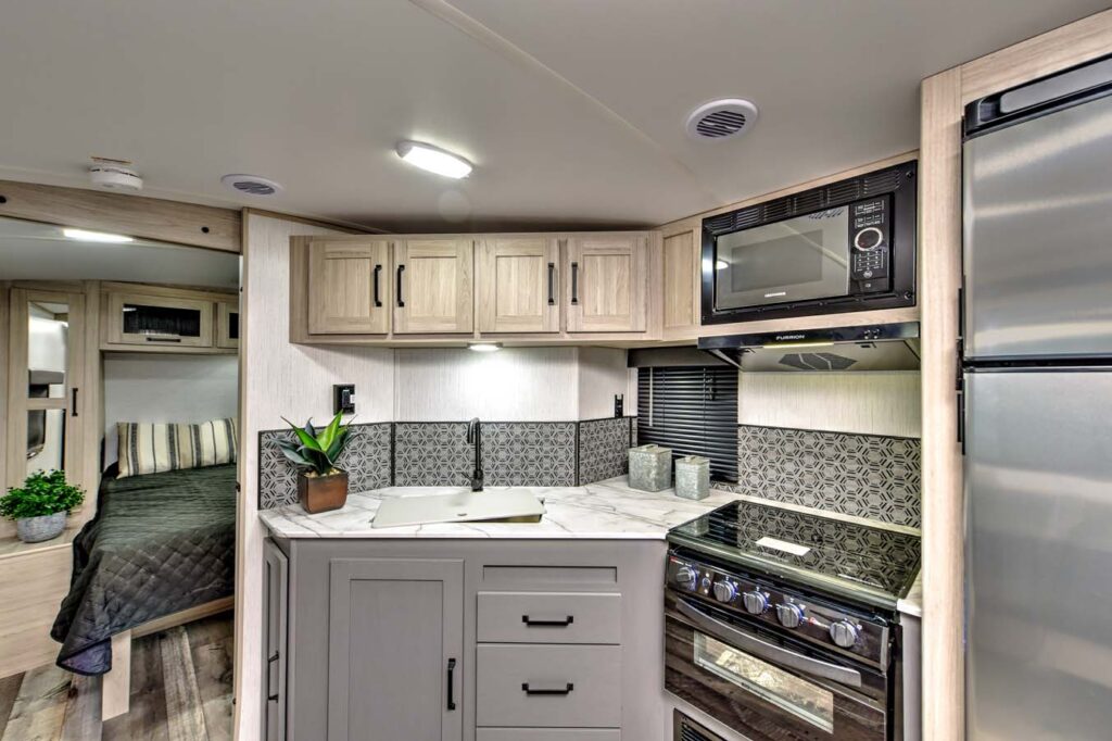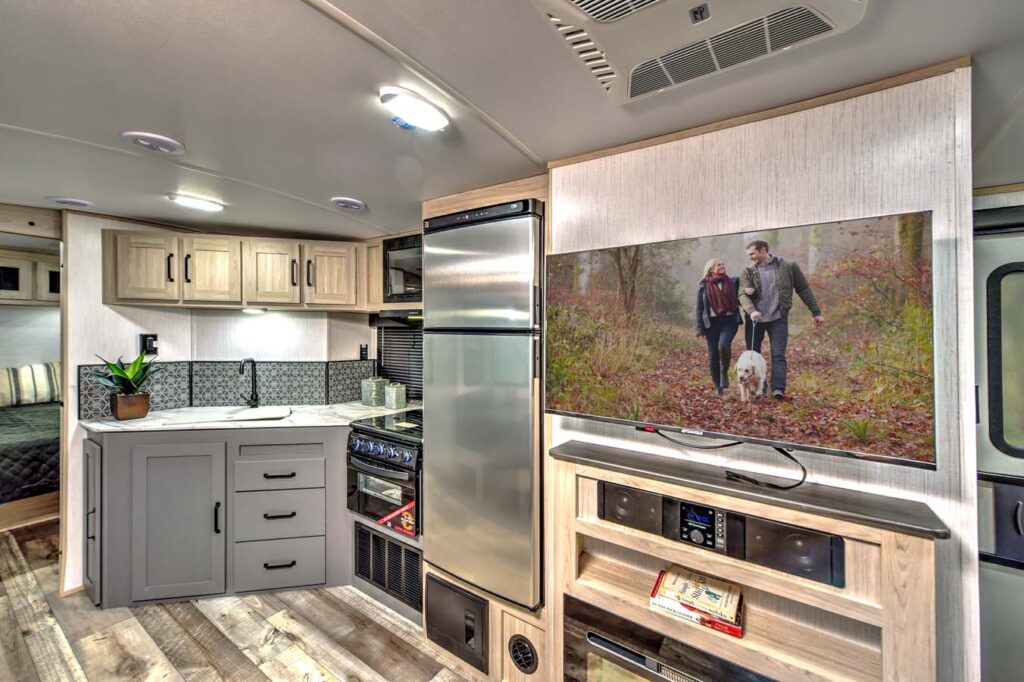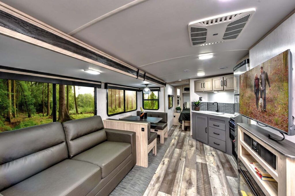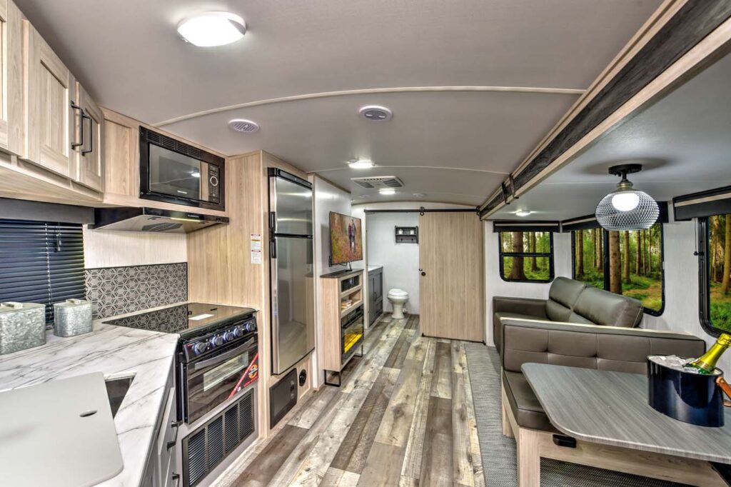- Woven flooring and flush floors in all slide outs making it family and dog friendly