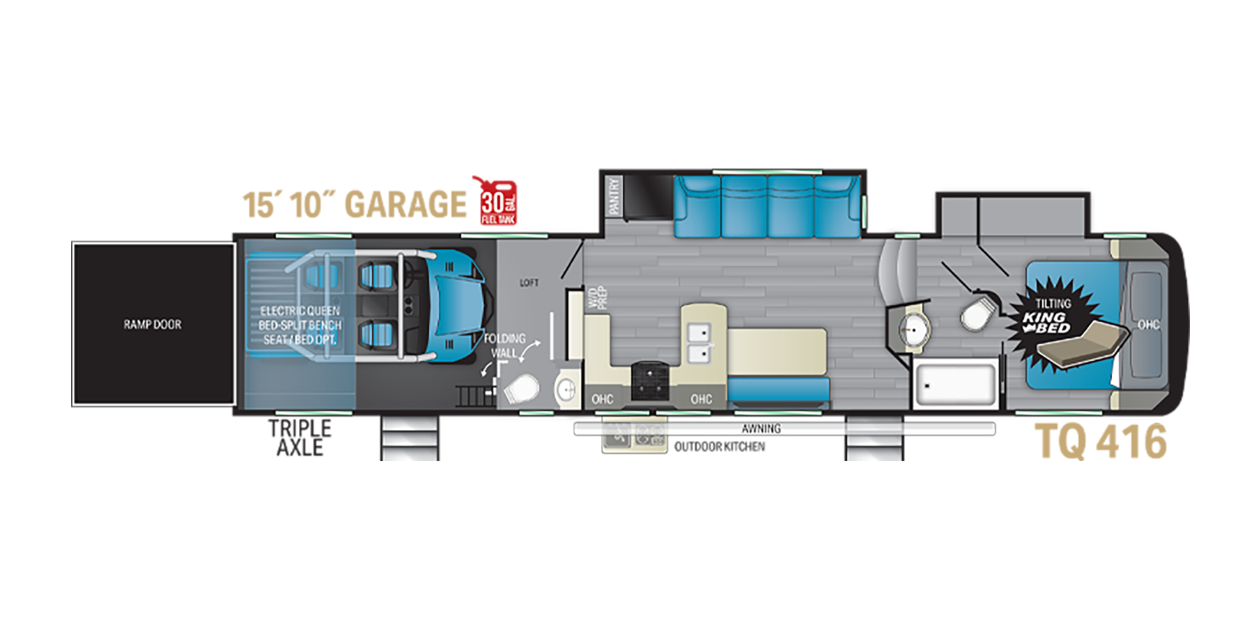 - Rear electric patio awning with LED Lights (FW only)