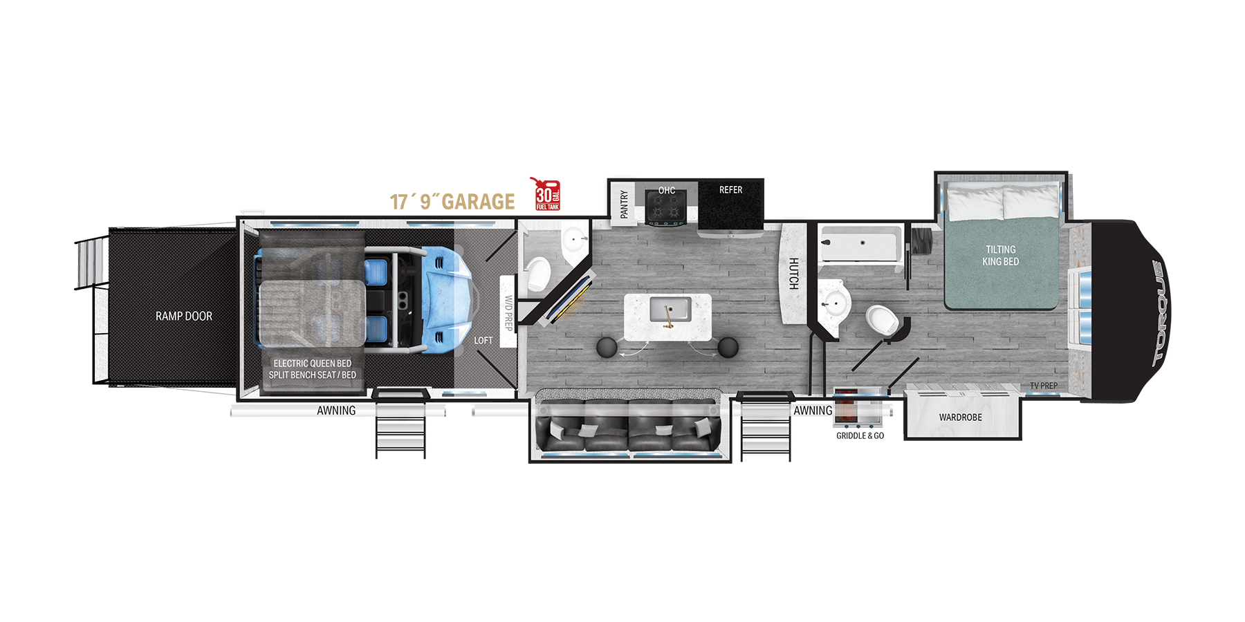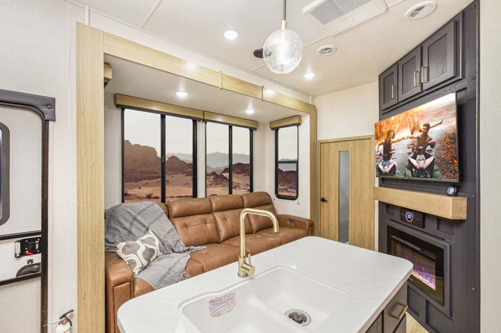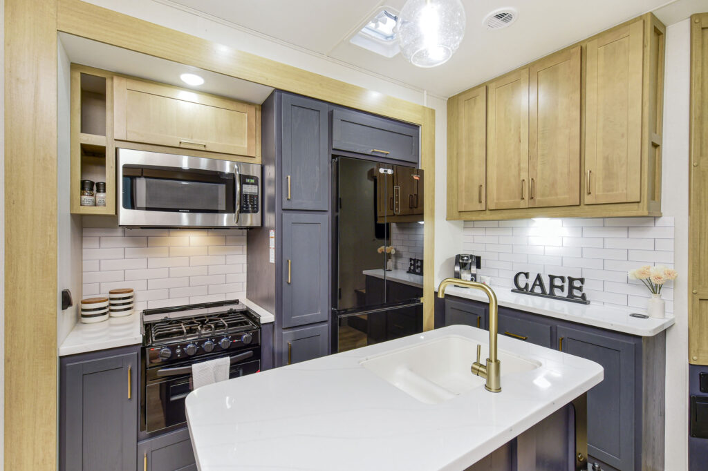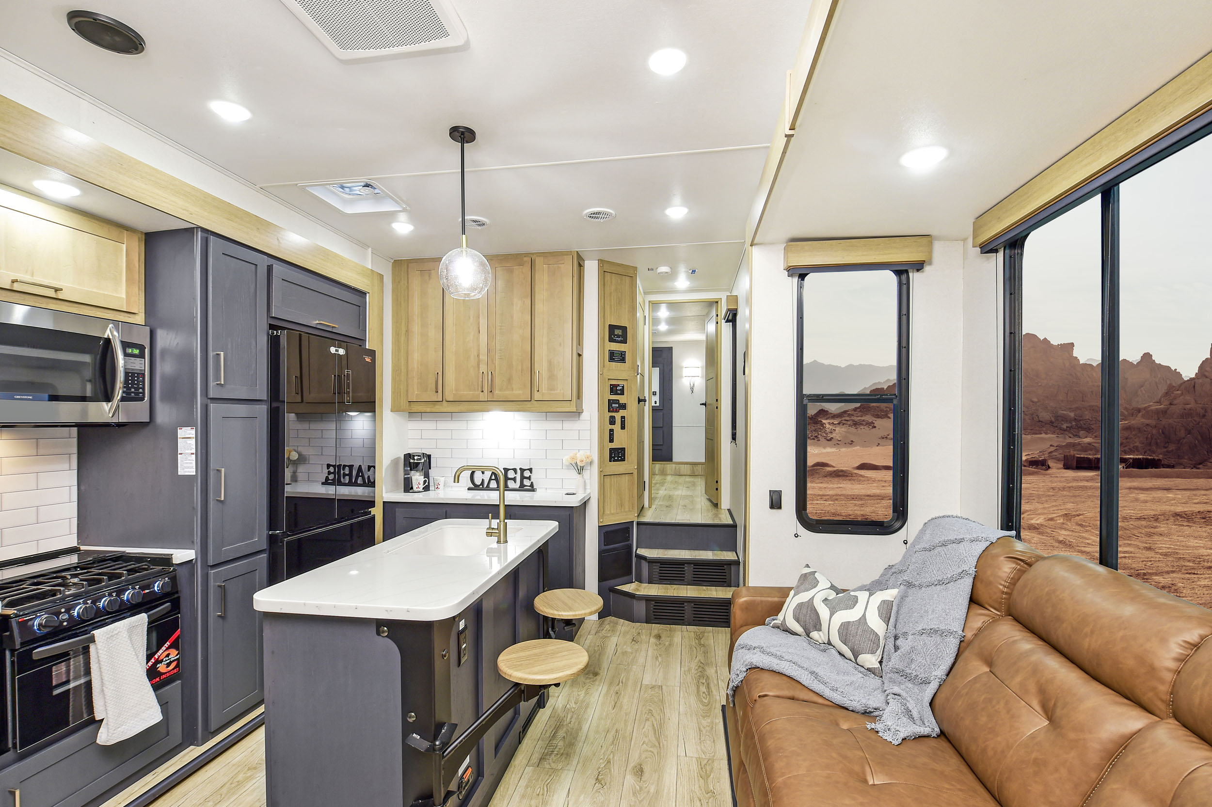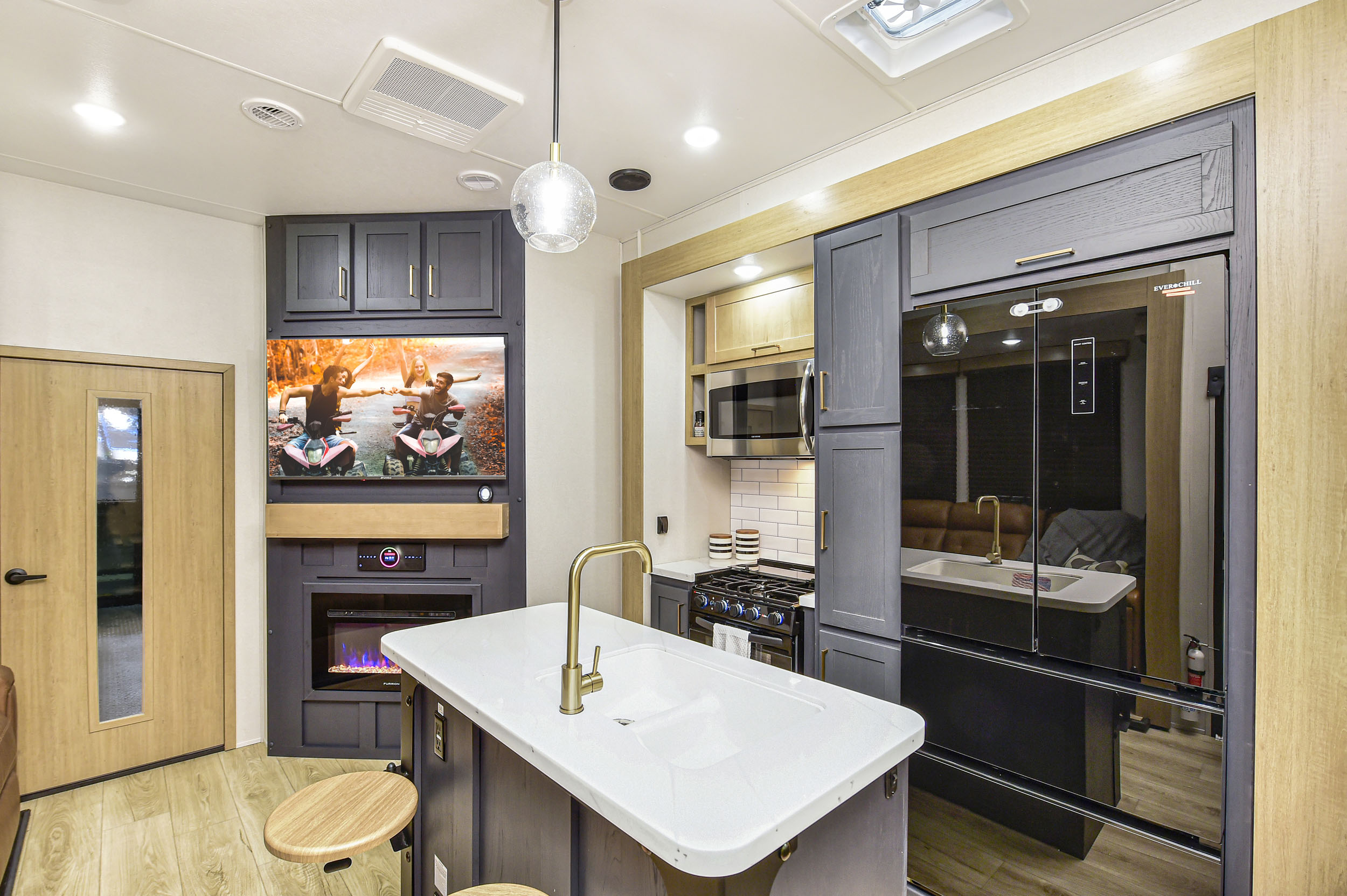 - Largest kitchen counter tops and storage than any toy hauler manufacturer