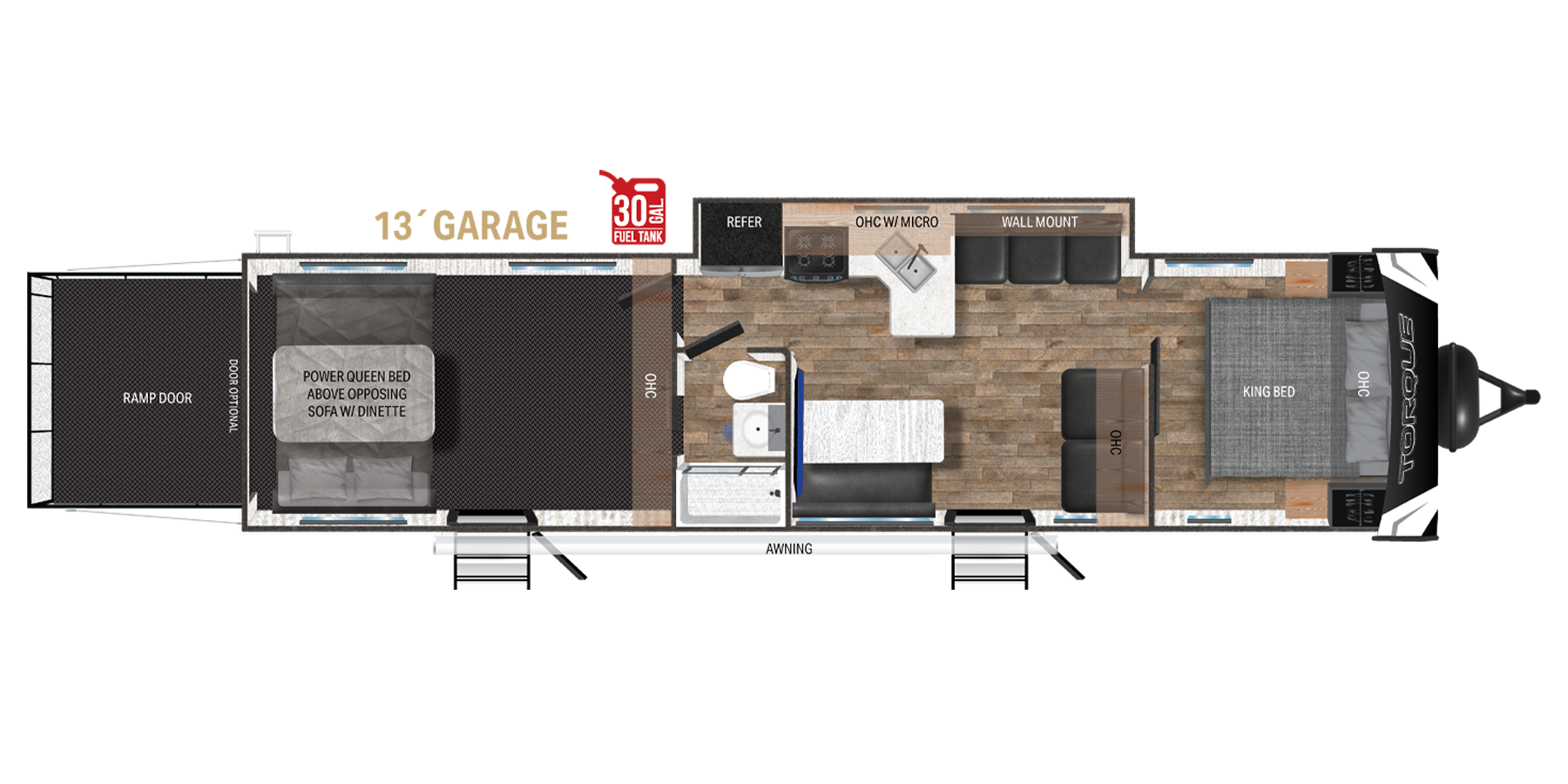 - King of ½ Baths! We offer more ½ bath floor plans in our toy hauler garages than anyone in the industry.