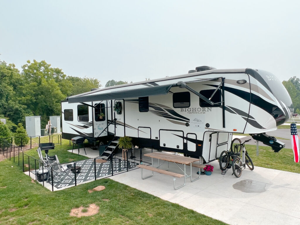 When we decided to buy an RV, we knew we’d need to shop for one that offered a good amount of space for us to sprawl out. After looking at many travel trailers and fifth wheels, we quickly knew we wanted to purchase a fifth wheel. They had higher ceilings, more basement storage, and generally came equipped with floor plans that suited the needs of our family.
