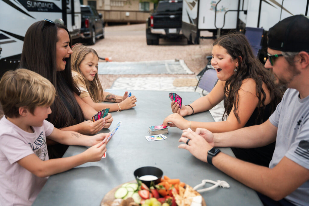 At least once a month, we enjoy family movie nights. Our RV has a queen-size pull-out sofa bed in the living room that we set up and all pile on to watch a movie. We indulge in our favorite snacks while enjoying wonderful family time together.