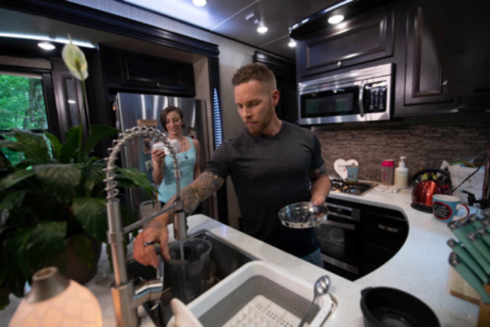 Fraser and Lauren Bayley are health and wellness entrepreneurs who specialize in plant-based nutrition and strength and fitness coaching. They purchased their 2018 Heartland Road Warrior 427 to be able to travel around the country booking speaking engagements and events, and they live full-time in their RV for several months out of the year. Here, they share with us why they decided to become RV owners and what factors drew them to the Road Warrior.
